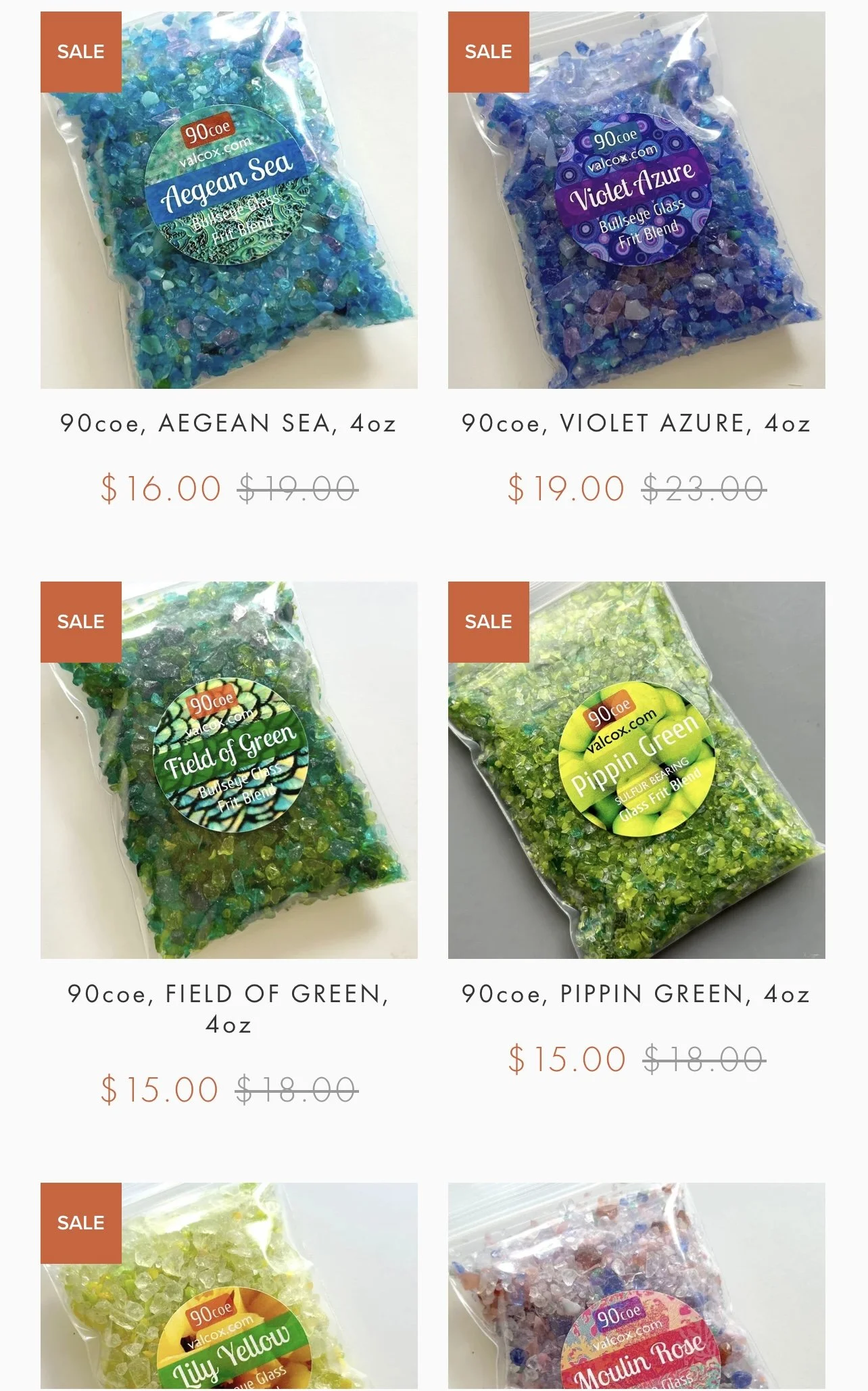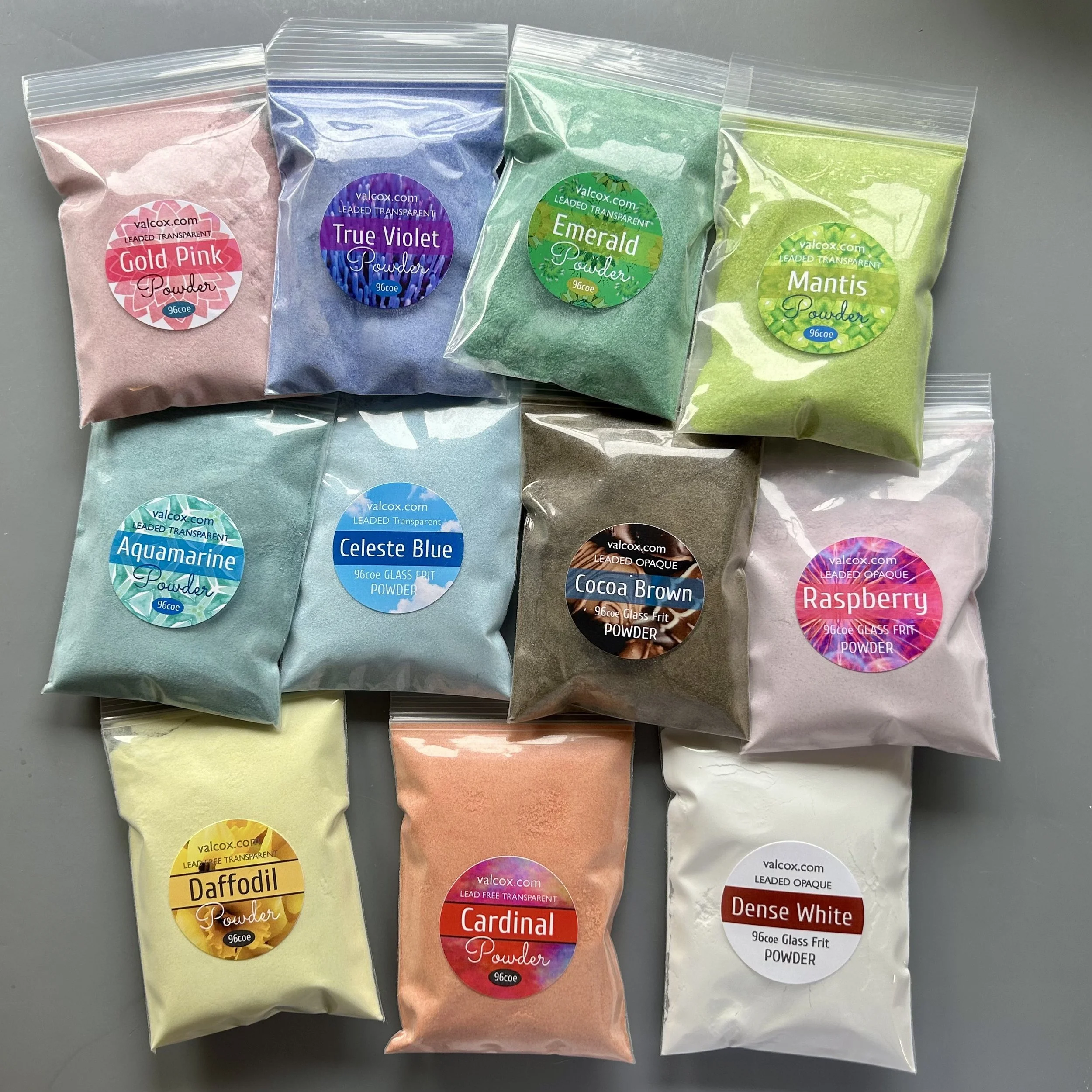 90coe! Eight new Val Cox Bullseye frit blends, prerelease, ready to ship.