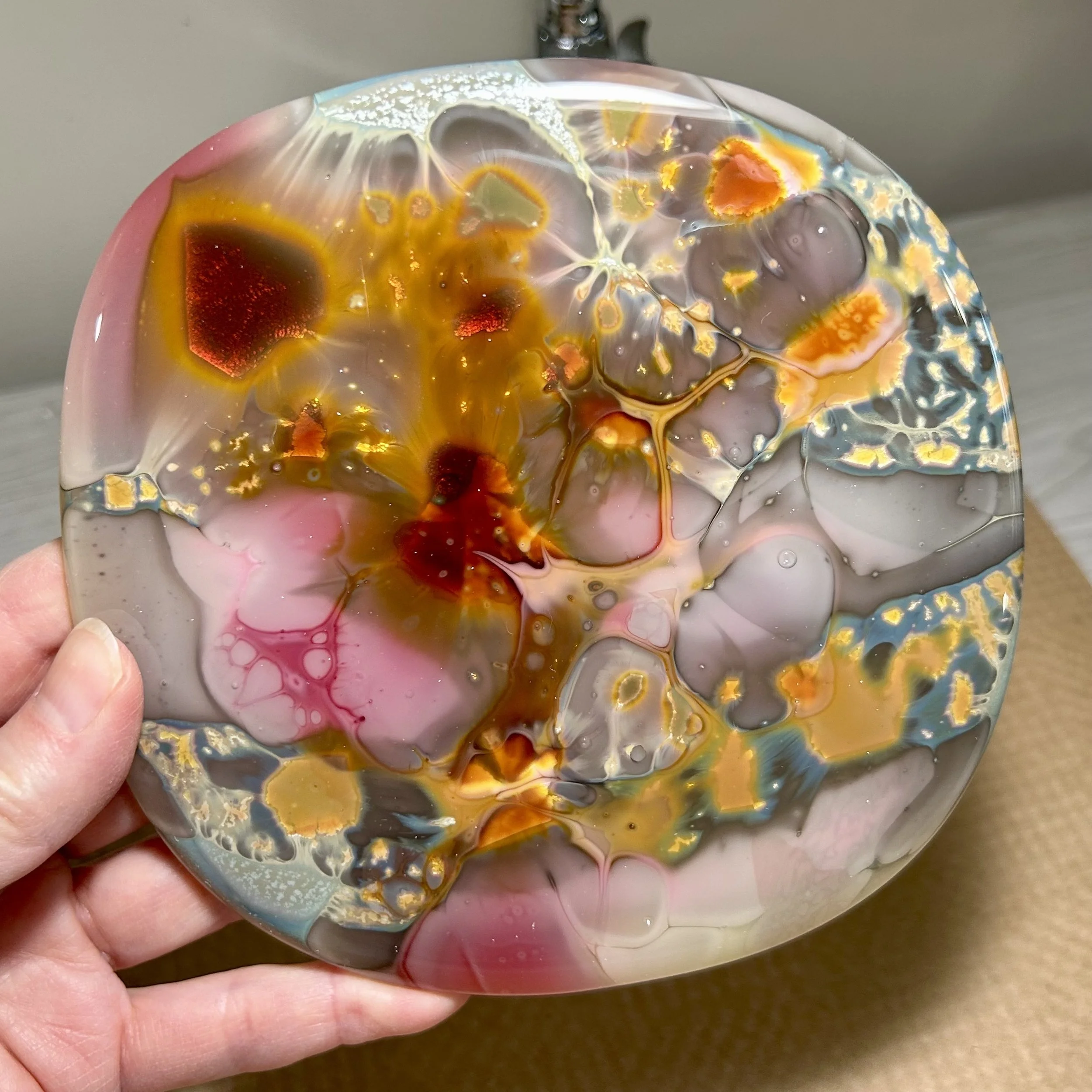 96coe watercolor trinket bowl, 3mm thick made from Color Drops.